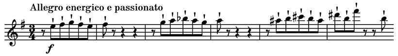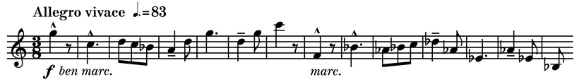Such force as is usually understood to be applied has a direct effect on strings, in that the bow remains on the string, and not leaping off and then back on, as with spiccato/saltando. If we dig into the definition of the word “marcato” as meaning that every such note is “well-marked,” then it isn’t only the attack and the speed of the bow which articulates the tone – but also the cutoff of each note by a deliberate stopping of motion. This stopping of the bow is another kind of accent in itself, which can further underline a character of curtness, not to mention aggression – and as the winds and brass will attempt to match the exact articulation of the strings, their approach will likewise involve a deliberate cutoff.