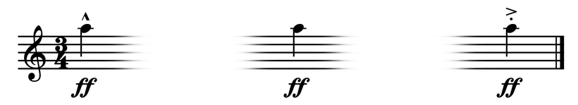 A friend of mine recently commented that if he scored a quarter note with a marcato accent at the start of a piece, and then a note at the end with an accented staccato, the effect might very well sound the same; as would possibly a single quarter note with no marking whatsoever in the middle (in the same dynamic context). This musing was added to a recent thread in the Orchestration Online group, in which many opinions on the topic were shared, from concert and jazz players, and some conductors as well. Reading that thread, one might come away with the notion that the marcato accent is so subjective as to appear meaningless in today’s scoring. At least to the players, who I’m sure prove my friend’s observation true in his work, the marking might mean anything, even when the composer has a specific intention – especially if the context hasn’t been made clear.